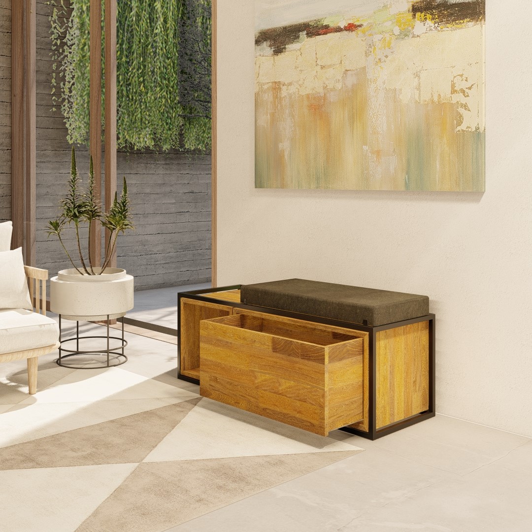 Puedes poner este versátil banco en el comedor, el dormitorio o el vestíbulo. Los espacios de almacenaje te permiten poder tener a mano lo que necesites.