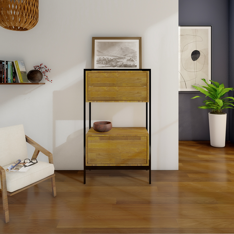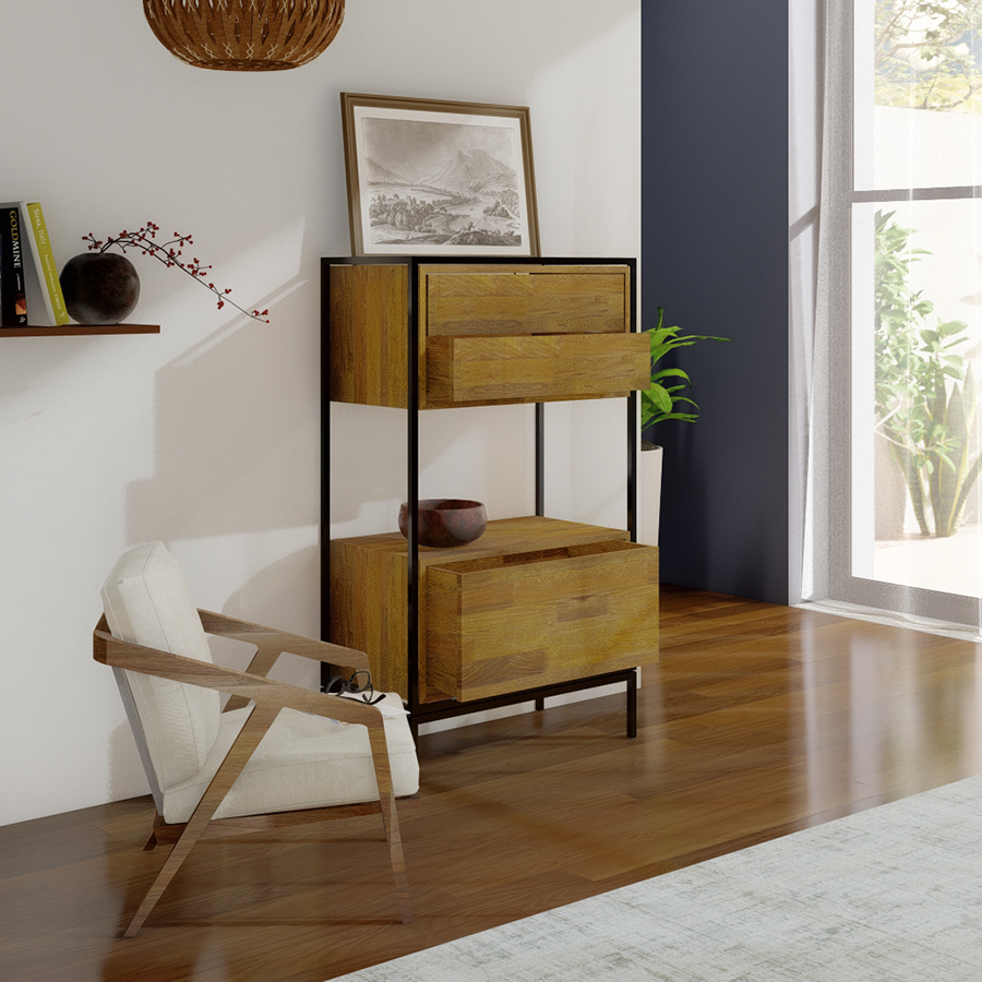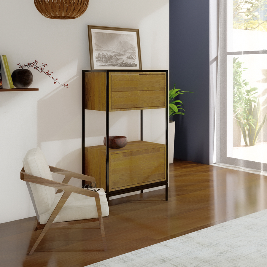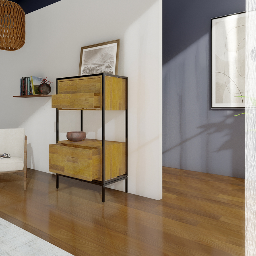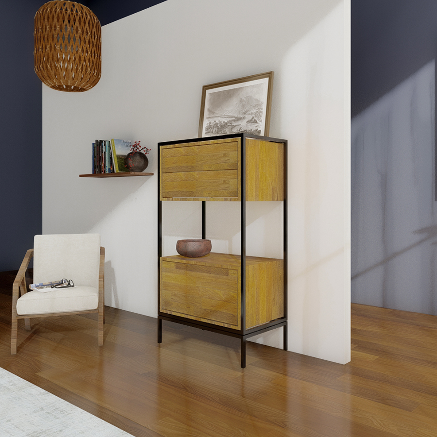 221 Cómoda Eva de madera maciza y estructura metálica lacadaCómoda Eva