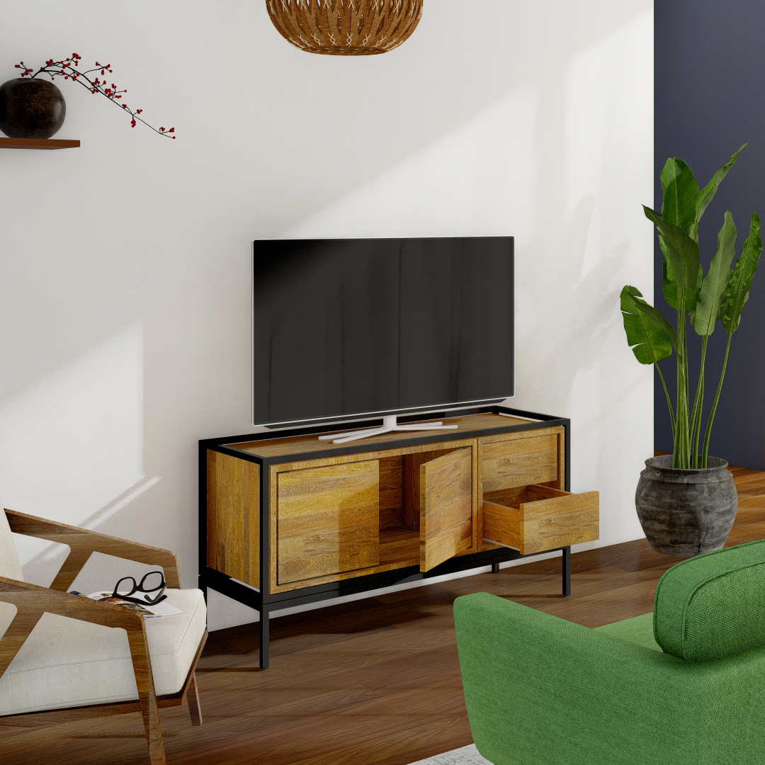 Las combinaciones de almacenaje para TV de INDIANA ofrecen espacio para el televisor y sitio para guardar los aparatos y todo lo que necesitas tener cerca, de modo que te permiten ocultar el desorden y mostrar tus objetos preferidos.